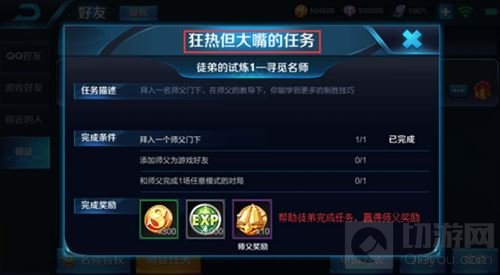 2.点击后可查看该徒弟目前进行进行的徒弟任务和进度。徒弟的名字会出现在任务窗口的顶部。