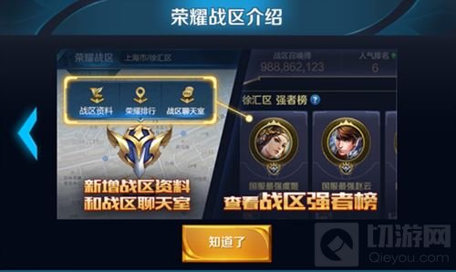 玩家在结束了紧张的一局后,在荣耀地图找到战区,点击进入战区聊天室,可以和同战区的战友沟通交流心得,切磋较量,也可以振臂一呼,组一个五人车队去为本战区赢得荣誉。当然你也可以以游客的身份去其他战区聊天室看看外面的世界。