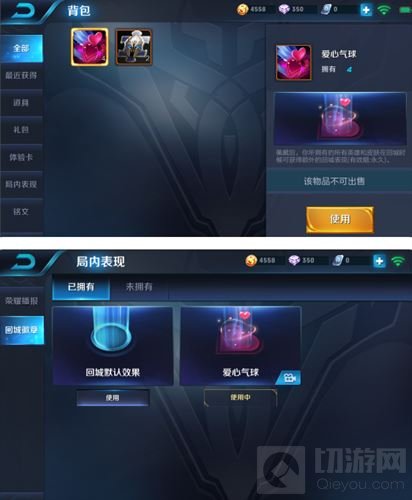 五五开黑节之520活动周专属奖励【回城徽章】在更新后登场。使用“爱心气球”道具后,可以在:备战-局内效果-徽章徽章页卡中进行穿戴。穿戴这个道具后,你所有的英雄和皮肤在回城时候都会获得额外的表现效果。