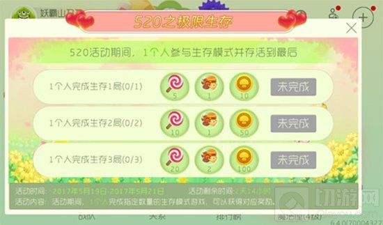 1个人完成生存2局,获得10个棒棒糖,1份神秘美食,50个金蘑菇;