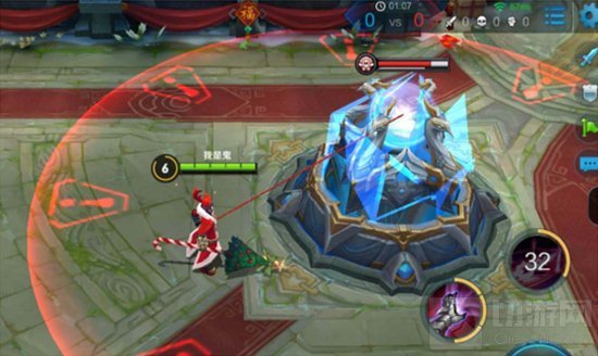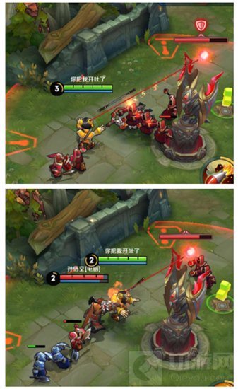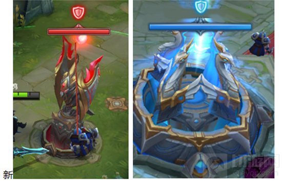 另外,我们还在机关血条上增加了一个小提示,就是如图的小盾牌:这个盾牌一旦出现,代表此防御塔周围没有对方的小兵,此时防御塔处于超级防御状态。