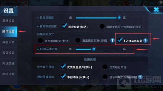 如果需要使用3DTouch取消技能,请一定在基础设置中打开3DTouch功能。