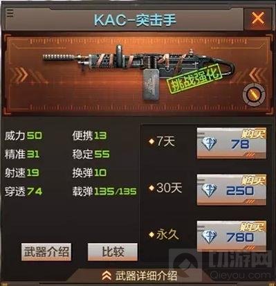 相信大家只要留意官网对于KAC-突击手这把武器的一个测评的话,就会知道这把武器的出现,改变了以往的武器使用局限。这把武器是结合了步枪以及机枪的两种属性,让战友们可以花一份的钱去买到两把武器,节省了一大笔开支,而且目前商城中永久持有的售价也只是仅仅780钻石,可以说是极为划算的。