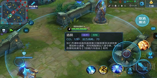 解析:这个技能可以解除控制,虽然类似于进化的效果,但是与净化还是有区别的,净化是免疫控制持续1.5秒,但是狄仁杰的而二技能仅仅是只能在受控的瞬间解除,提前使用是没有效果的,所以一定要注意释放的时机。另外,这个技能与一技能一样,具有输出与控制并存的效果,同样的在贴脸的时候会打出更高的伤害。