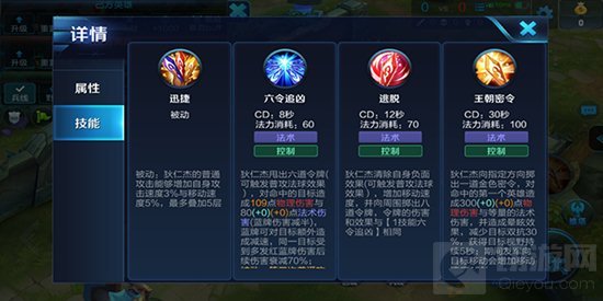 解析:这个技能决定了狄仁杰是一位相当依赖攻速的英雄,而他的攻速成长也是在射手中是较高的,移速加成使得狄仁杰并不是一个站桩输出的英雄,走A才是最正确的(后面会详细介绍)。