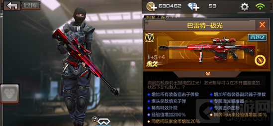 穿越火线手游第一把巴雷特系列的英雄武器,巴雷特是重型狙击枪,它以超高的伤害,独特的外形,缓慢的移动速度为人所知。而这杆巴雷特-极光更是比普通的巴雷特属性高很多,而且还有专属的激光瞄准器,专属击杀图标,还有英雄武器的加成,做一个合适的狙击伙伴真的是再好不过了。