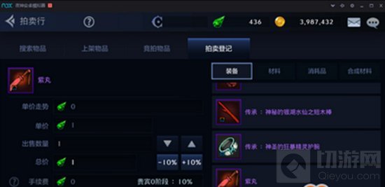 此外物品上架时会有一个单价走势,就是该物品在拍卖行的平均价格,若没有此物品则显示为0。和端游一样需要手续费,为10%。不过这个贵宾0是什么意思小编不清楚,从四测有拍卖行功能后就一直存在,不过没开放,估计就是所谓的VIP吧。