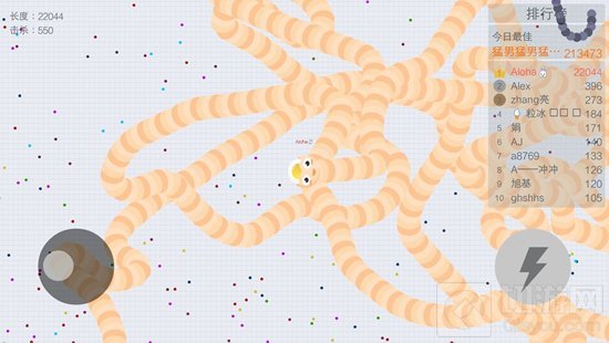当你一出生就有大蛇找你单挑,屏幕上只有你和一条来势汹汹的大蛇。你觉得自己的机会来了,结果,十有八九都是你成为大蛇的盘中餐。小吃大具有很强的运气因素在里面,首先你位置要在大蛇的前面,其次你们距离要近,最后大蛇要够蠢。但大部分情况下,对方能到这么长都是有一定实力的,别想太多了,还是想想怎么样才不会被围住吧.