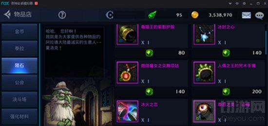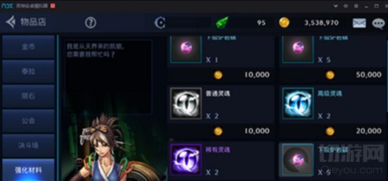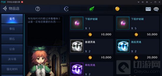 金币商店,由于手游中金币获取途径比较简单,所以能够购买的东西也比较少,只能买一些炉岩碳和灵魂什么的,用于强化和锻造装备。