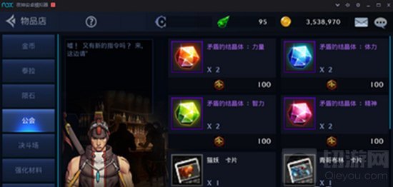 公会商店,可以购买矛盾结晶体和卡片。需要的货币材料为公会铸币,前提玩家加入公会才能开启,成为公会成员后在刷图的同时会获得公会铸币。结晶体用于增幅,卡片则用来附魔,虽然品质不高。