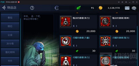 徽章商店,分为暗淡和耀眼两种,金币只能购买暗淡徽章,属性要差一点;泰拉币可以购买闪耀徽章,属性中等,用于装备镶嵌。