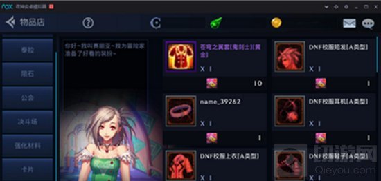 DNF手游手游商店是游戏内不可获取的系统,在以前的第五次测试中DNF手游的消耗品和装备并不是很多,但是现在这些物品被分为了就大类,感兴趣的小伙伴,接下来就和切游小编一起来看看吧!