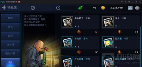 卡片商店,有不同品质的卡片提供给玩家,不过最高也才蓝色品质,想要稀有以上的还是要刷图看脸啊。