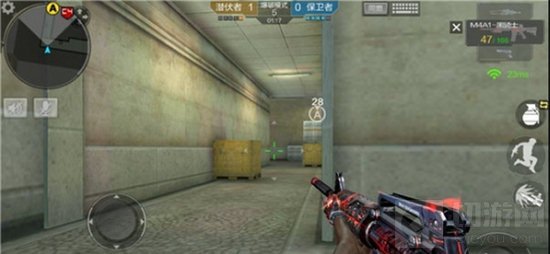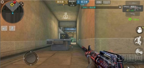 因为A包点位置不大,所以一旦潜伏者下包之后,保卫者将会处于一个非常被动的状态,我建议将包下载准心瞄准的位置,同时在图中位置防守,这样可以大大增加自己的生存能力也能有效的防止保卫者拆包,需要注意的是,为了防止保卫者人数比较多,而可能分开包围你,所以多听脚步观察左侧环境,切记不要开空枪,这样容易暴露自己的位置,让敌人轻而易举的找到你。