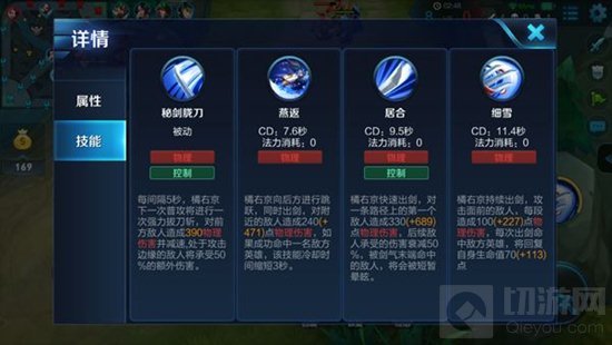 闪现:橘右京本身只有一个位移技能,一旦交出位移技能后再有敌人追杀,或者自身被控,橘右京还可以利用闪现来逃命。