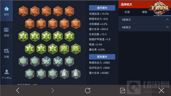 蓝色铭文槽:“隐匿”*10——+16物理攻击,+10%移速或“狩猎”*10——+10%攻击速度,+10%移速