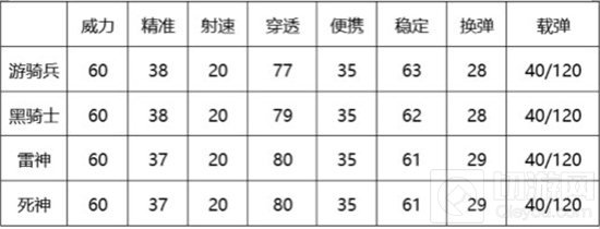 从表格中不难看出,游骑兵在威力、射速以及便携方面与黑骑士、雷神以及死神一模一样;而在精准以及稳定方面明显要更高,但游骑兵的穿透以及换弹就趋于平常了。因此我们可以得出结论:M4A1-游骑兵各项数据都很不错,尤其是精准以及稳定更是非常突出,但是换弹和穿透则相对来说较弱。