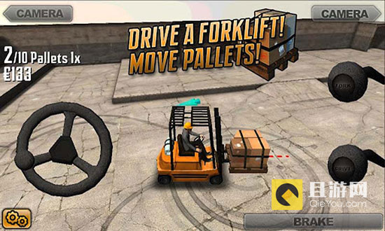 游戏上手依然很简单,左边是方向盘,右上控制叉车叉子的升降,下面控制车子的前进后退,最右下角就是刹车了。看起来很简单,所以你就能玩好了?