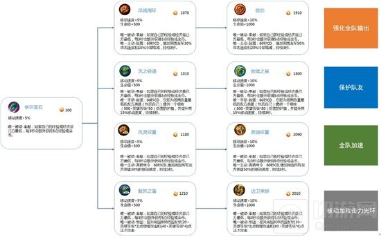 最后,我们将所有辅助装备的基础属性统一调整为:移动速度+生命值。用来提升辅助英雄的生存和支援能力。