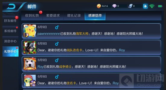(好友感谢信界面:代表好友已经收取了你赠送的皮肤或者道具)