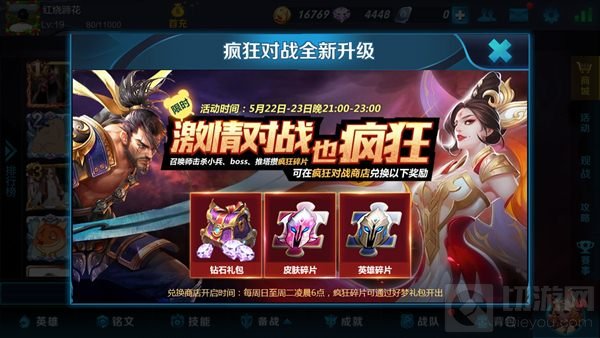 王者荣耀的疯狂对战全新升级啦,大把的钻石、英雄碎片等你来拿哦~下面切游就给大家说说本次活动的具体详情。