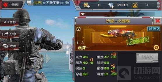 沙鹰火麒麟是CF手游中的英雄级武器之一,只能在英雄礼包抽取,那这把武器精通满级之后怎么样呢?下面切游就给大家介绍一下火麒麟沙鹰的精通属性,一起来看看吧。