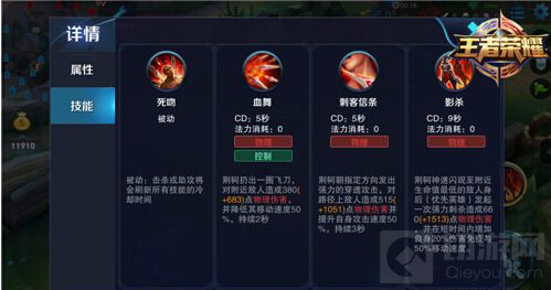 这是荆轲的核心技能,后期具有超高输出能力的荆轲加上没有冷却的技能,让荆轲如鱼得水。