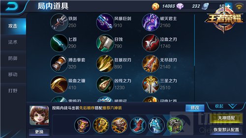 出门装当然是咒术典籍,核心装备自然是利于团队的军团荣耀。六神装按照顺序分别是:圣杯,强力的减CD效果,一定的法强,法力回复,以及被动,大大增强了孙膑的消耗和续航能力;然后是军团荣耀,范围内的队友增加防御抗性,提高了队友团战的输出和生存能力;接着是不祥征兆,是一件经济实惠,效果好的防装,用于削弱敌人攻速移速,提高己方的生存能力;鞋子选择的是冷静之靴,能使孙膑释放更多的技能;第五件是冰封之心,提供强大的防御能力,蓝量,和减少敌方移速的效果,配合二技能简直是逃跑利器;最后,就是振兴之铠,提供法术防御和减CD效果,增加孙膑的辅助生存能力。