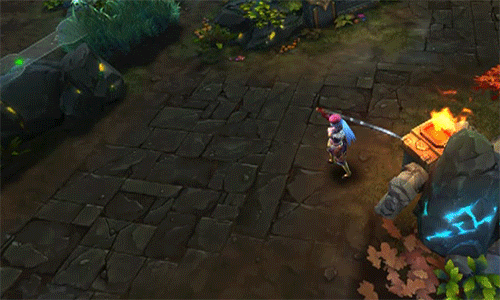 瓦勒莉冲刺至目标位置,同时给自身生成护盾,使周围的目标单位受到伤害并击晕。