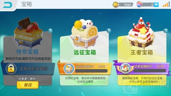进入宝箱功能界面之后可以看到三种宝箱,每种宝箱都可以通过游戏收集获得碎片,其中传奇宝箱需要通过收集星贝解锁,王者宝箱需要开启远征宝箱来获得碎片,那么下面就主要讲一下星贝的收集以及远征宝箱碎片的收集吧。