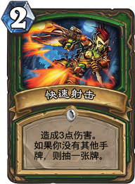 快速射击能够起到非常重要的作用,在当前环境中,萨满的坑道穴居人是非常有必要去解掉的。如果我们处于后手而对方萨满1费下了穴居人,在2费有生物的情况下我们甚至可以硬币快射解掉穴居人。