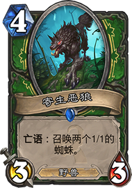 在控场的情况下我会选择寄生恶狼,它能够非常好的站场并且能在随从交换中获得优势,特别是在对抗萨满的时候,寄生恶狼能够吃掉萨满的狼魂和穴居人。