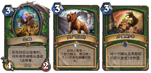 在前期,猎人印记和杀戮作为解牌的效率太低,但如果你面对打脸萨或动物园的时候可以考虑配合放狗或者恐麟和强风射击。