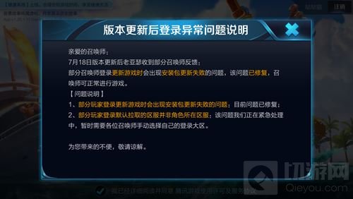 部分召唤师登录更新游戏时会出现安装包更新失败的问题,该问题已修复,召唤师可正常进行游戏。