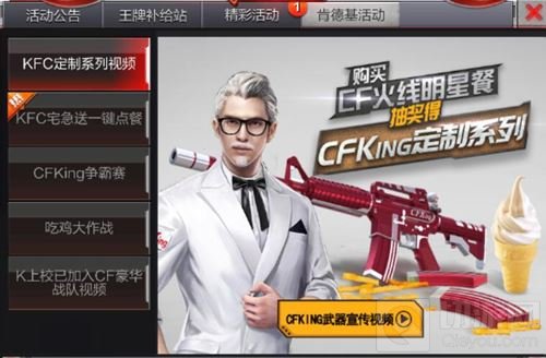 购买CF火线明星餐,抽奖得CFKing定制系列。