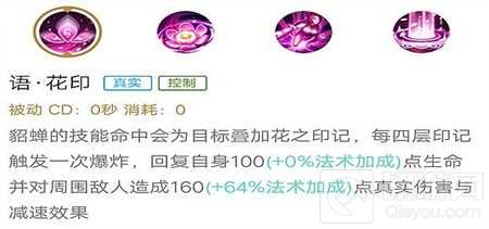 技能解析:被动技能是貂蝉的核心所在,貂蝉主要通过触发此技能来回复自身生命并对敌人打出爆炸伤害。