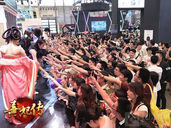 大家的热情实在抵挡不住,《熹妃传》展台前围满了前来抢周边的玩家们。