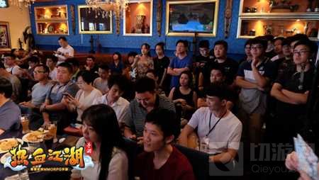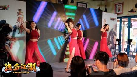 《热血江湖手游》嘉年华上海站整个会场都充满了热血江湖的游戏元素,现场除了美味的下午茶点,还有热血江湖的美女Coser招待各位玩家。所有到场的侠客们一边悠闲的吃喝,一边寻找着游戏中的好友,热情招呼后聚在一起讨论着这款钟爱的游戏,直到一波热情的美女舞蹈表演正式拉开活动序幕。