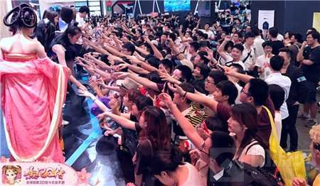 玩友时代这次携旗下重磅产品《熹妃Q传》强势登陆2017CJ,着实感受了一把玩家们的热情,试玩区和周边区人头攒动,大部分时间都排着望不到头的长队,热烈互动的气氛简直要把屋顶掀翻。无数长枪短炮对准美貌的ShowGirl快门不停,无数双手在精美周边的吸引下忘情挥舞,堪称最火爆场面!