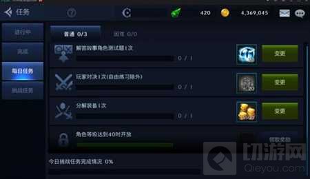 每日任务有等级限制,角色达到20级作为开启条件。20级时会先开两项任务,之后30级会开一个,40级后会开最后一个,一天总共能完成四个。如果对其中一项不满意,可以点击变更换一个,不过每日只有一次机会。当你四个任务都完成后则可以领取最终奖励——若干泰拉币,在手游可以很珍贵的哦。