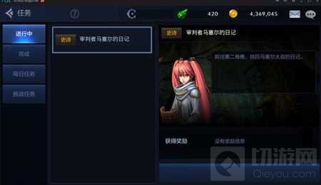 这里给大家展示的是进行中的主线任务,手游中主要靠主线任务进行升级,没有支线任务以及外传任务等等。后期升级比较慢,会临时出现紧急任务供玩家接取,不过只提供经验没有奖励。