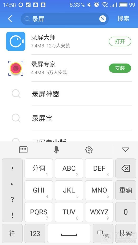 1)首先安卓用户可以在应用商店搜索“录屏大师”这个软件;