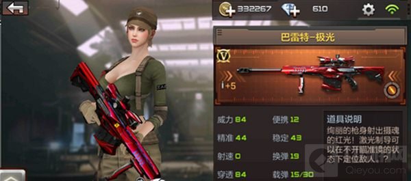 它作为狙击枪中的英雄级武器,威力、穿透、稳定、精准等等属性数据全面完美,极光比普通的巴雷特狙击枪枪身长几分,暗红色的金属漆色以及瞄准镜上隐隐预约的光华为其增加不少分数。极光携带方便而且威力凶猛是穿透的利器,如果有喜欢玩穿透的首选这把枪。