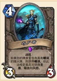 正经的效果,也不算特别强的样子,但是,这张牌肯定很好用。明显是张银色侍从的加强版,让人想起了当年的护盾机器人,一张能决定环境的卡牌。这张牌能给夺尸者2个效果,将是圣骑的必带卡牌。