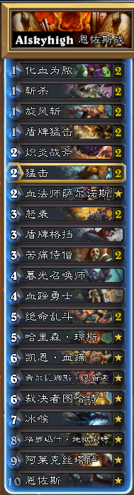 血蹄勇士或血法师:可替换为一张战斗怒火,若用血蹄勇士替换,可保证全程不断过牌。