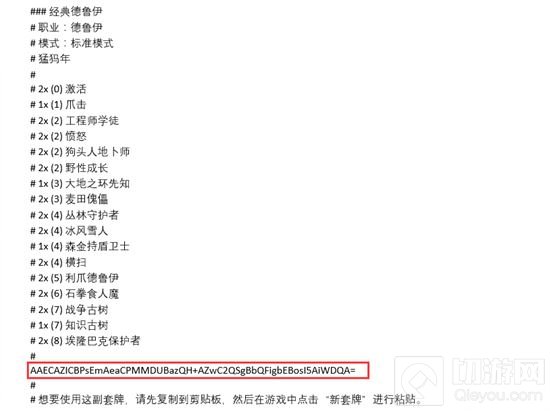 为了保证游戏内的套牌代码可以在卡牌工具中正确读取,请黏贴完整的套牌代码或下图红色方框内的代码信息。