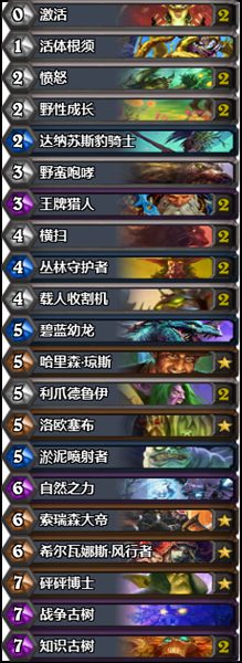 1套的原因:我想2套加激活横扫这种手牌经常打咆哮德的同学们应该不陌生,那真是吃了屎一样难受,带一套很难因为自然之力咆哮卡手而输掉比赛,提高咆哮德卡组的稳定性,然而任何事物都有2面,1套德,容易摸不到一套的爆发,被牧师战士拖死,(因而对阵牧师战士时看情况留蓝龙知识树是聪明的打法~)