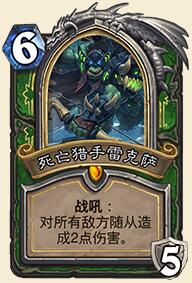 猎人的死亡骑士英雄卡牌是最早被公布的卡牌之一,这张英雄卡牌使用后会让猎人获得一个全新的技能合成僵尸兽,全新的英雄技能效果为:制造一个自定义的僵尸兽,你可以从3只野兽中选择1只,再从3只不同的野兽选择1只,然后将选择的两只野兽缝合在一起,变成一个合成的野兽牌,这张卡牌的费用、攻击以及生命为选择的两张牌的总和。在新版本上线的第一周中猎人的英雄卡牌深受广大新手玩家的喜爱,其原因就在于猎人卡组造价低廉但是整体强度很高,而且很好玩。英雄卡牌的加入更是让猎人在对战后期可以轻松的利用变身后的英雄技能来制造强大的野兽生物,这也直接弥补了猎人后期缺手牌以及后期生物质量较差的弱点,因此猎人成为了新版本中出场率较高的职业之一。