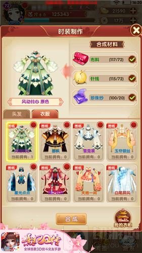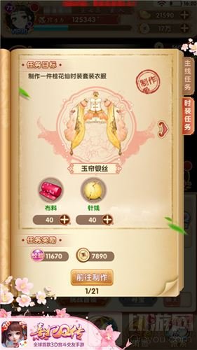 在官品到达要求之后,主线任务中将会开启“时装任务”栏,需要小主们收集材料,例如布料、针线、珍珠纱之类,当制作材料满足所需数量,小主们就可以制作心仪的时装啦!