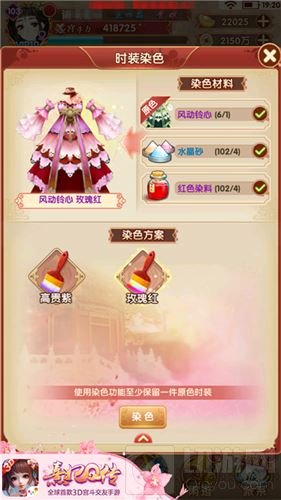 新奇的时装染色系统更是为小主们丰富了更多的选择项,在时装染色界面选择染色方案,便可以看到这套时装能够变幻的颜色和材料,紫色的风动铃心是不是比原色增添了一抹神秘的风情呢?需要注意的是,时装染色是直接在原时装上操作的,小主们如果想保留一件原色时装,一定要记得在库存足够的情况下进行哦!